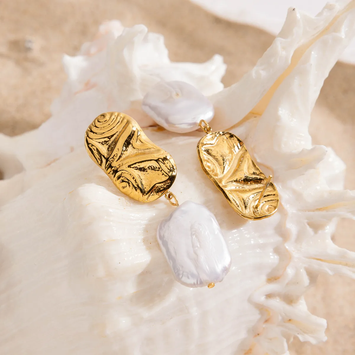 Elegant Freshwater pearl Geometric Anti tarnish gold plated Drop Earrings