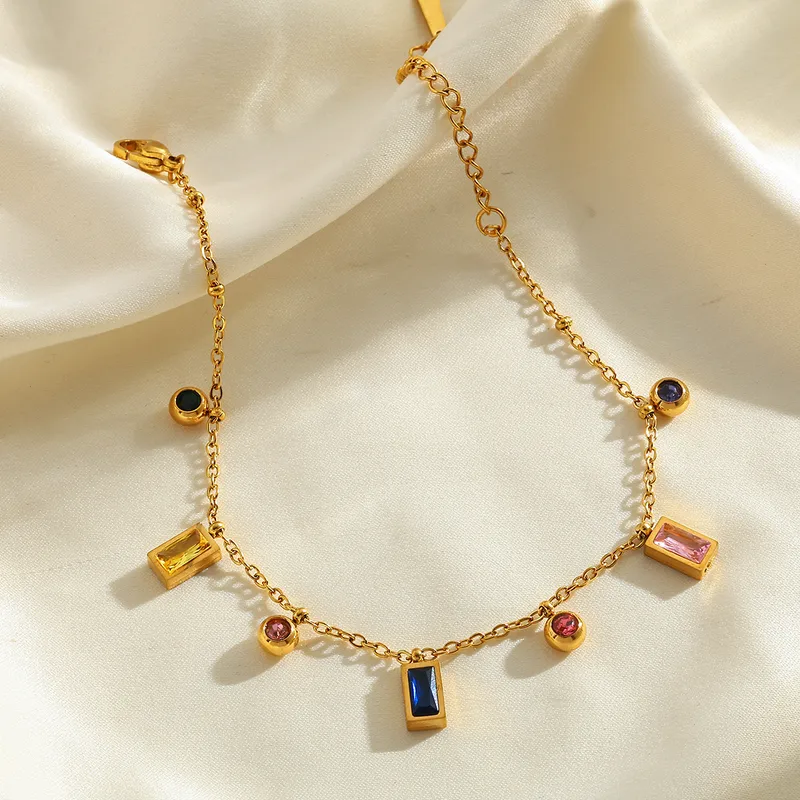 Geometric Multi-Colour 18K Gold Plated Zirconia Elegant Shiny Bracelet