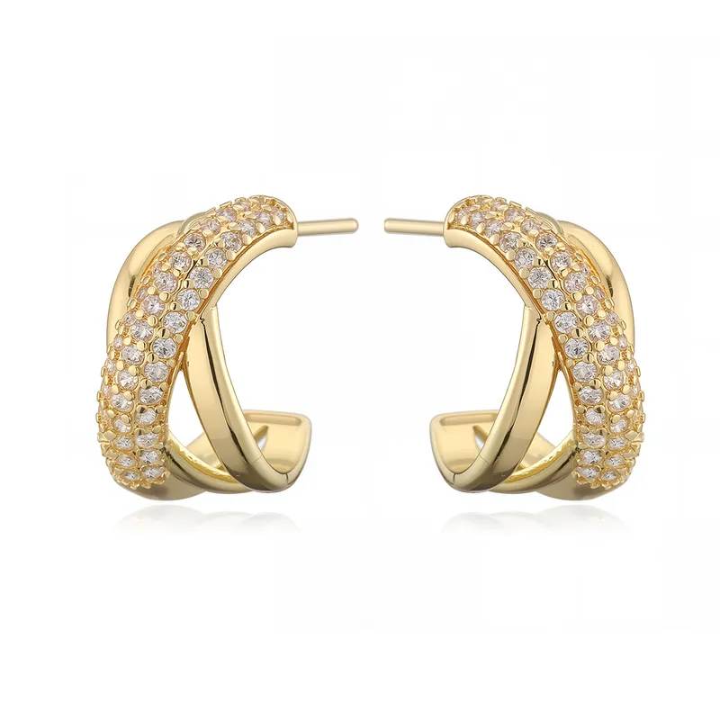 Luxuirous Geometric Shape Zircon Inlay Anti-Tarnish Ear Stud