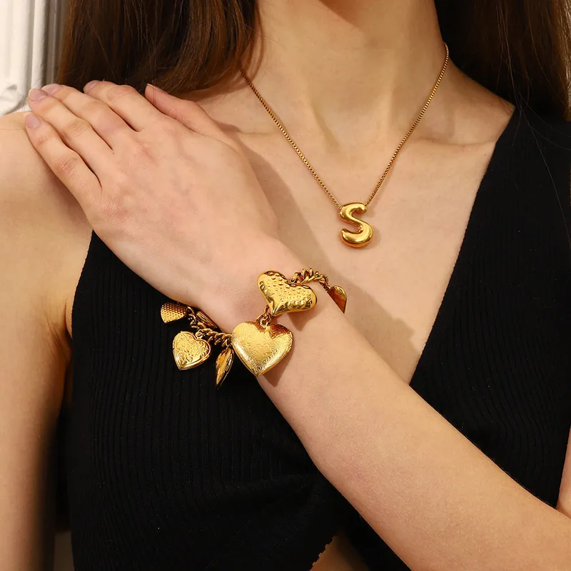 Premuim Heart Multi Charms 18k Gold Plated Artistic Design Bracelet